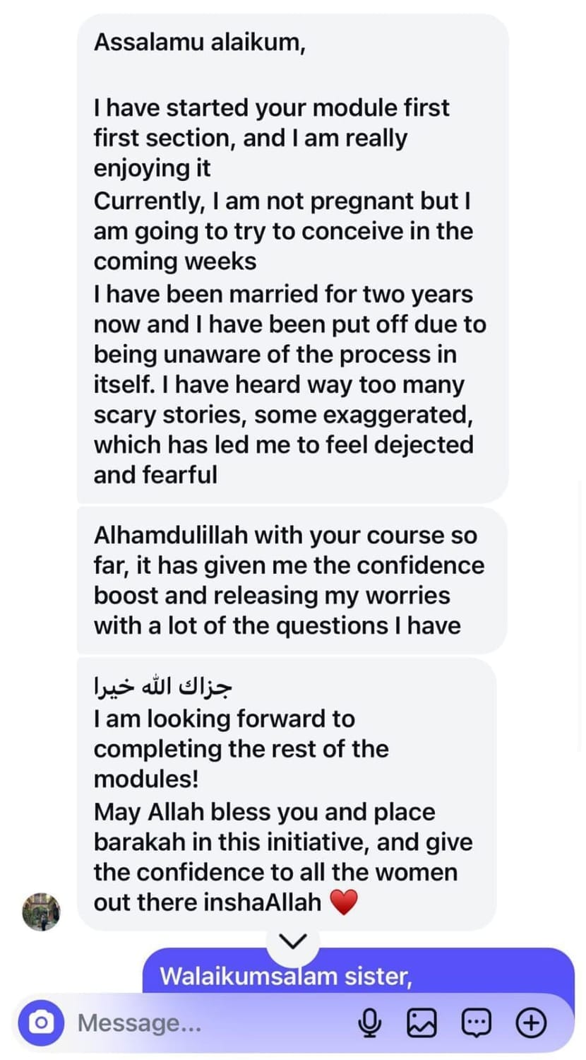 "I needed a full antenatal course made just for Muslim mums, by Muslim mums. Something that gave me everything: birth education, Islamic reminders, nutrition, hospital prep — even how to spiritually connect with my baby before they were born."
